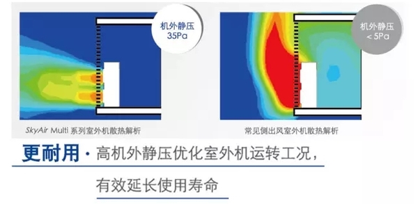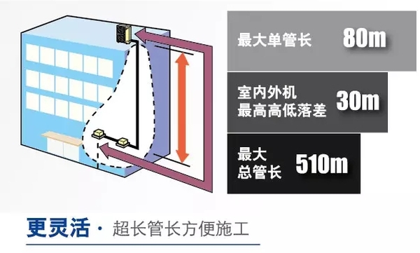 SkyAirMulti系列不僅機身小巧,可以根據(jù)業(yè)主需要隱藏在店鋪招牌后方、屋頂或建筑周邊綠化中,同時還輔以了長配管設(shè)計和高機外靜壓,相較普通分體式一拖一空調(diào),連接長配管時空調(diào)能力更足,散熱能力更佳,具有更好的空調(diào)使用效果。